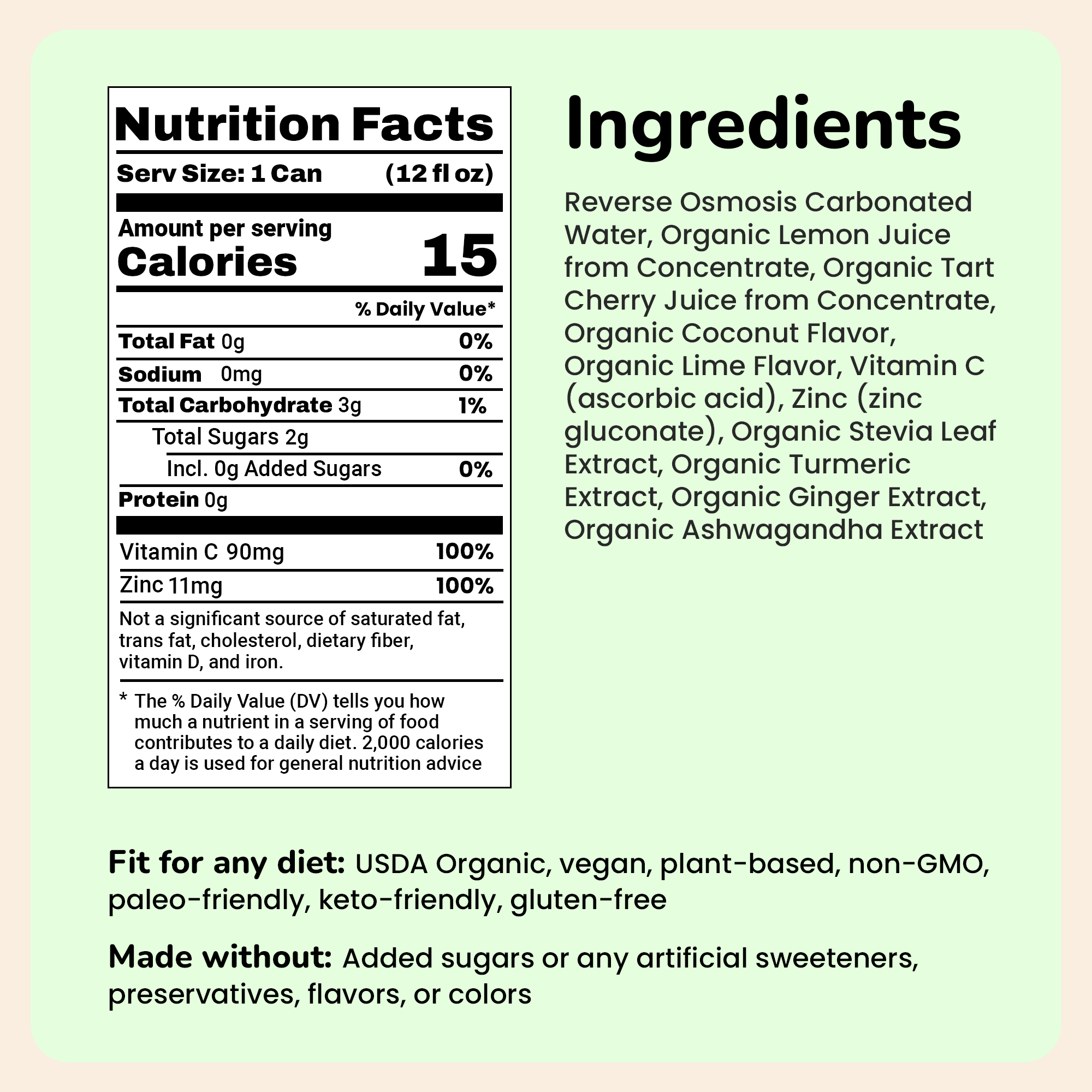Clean Ingredients | Non-GMO, plant-based | Artificial flavors + colors |