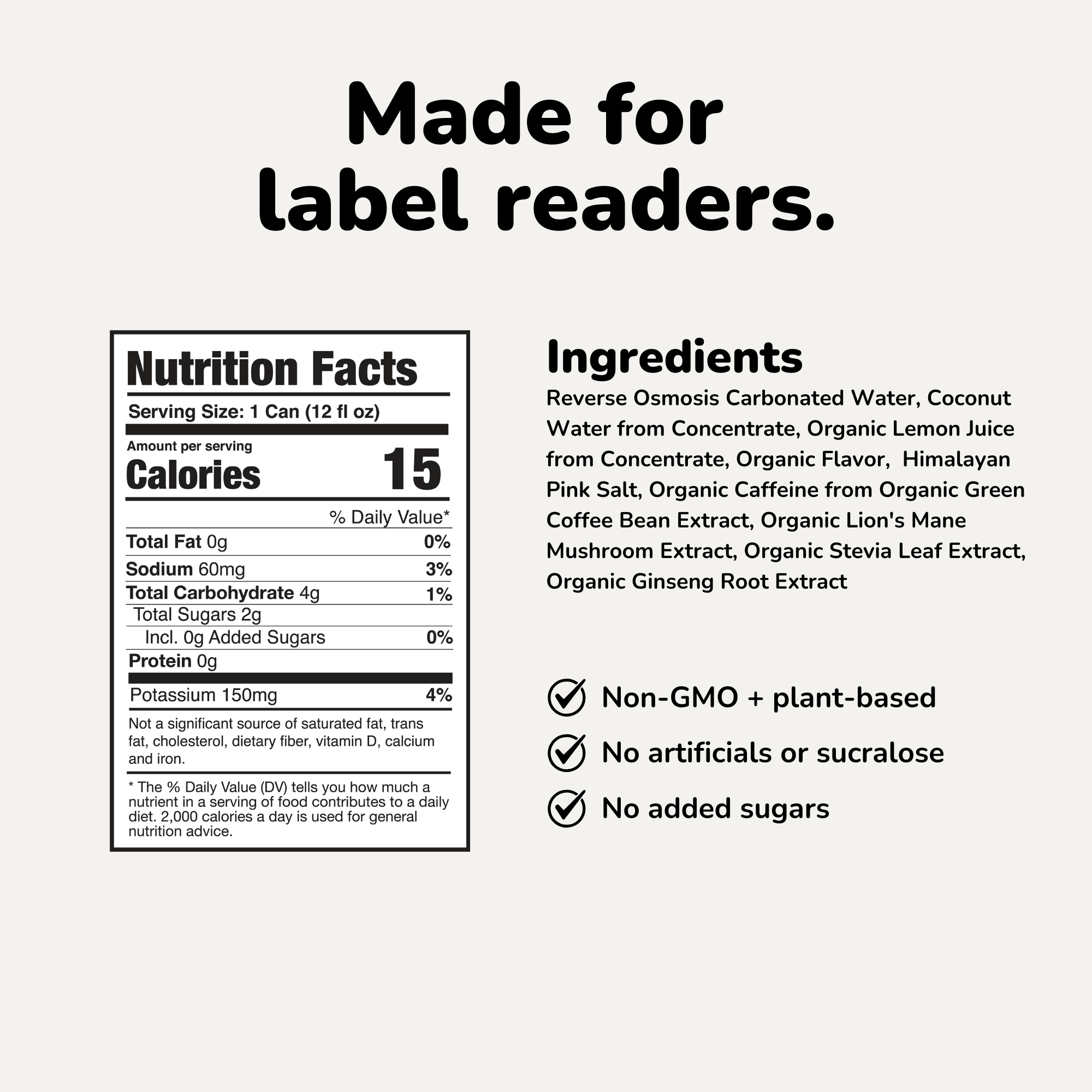 Clean, sustained energy without the crash. With 120 mg of naturally sourced caffeine, it gives you the mental lift you want, minus the jitters.